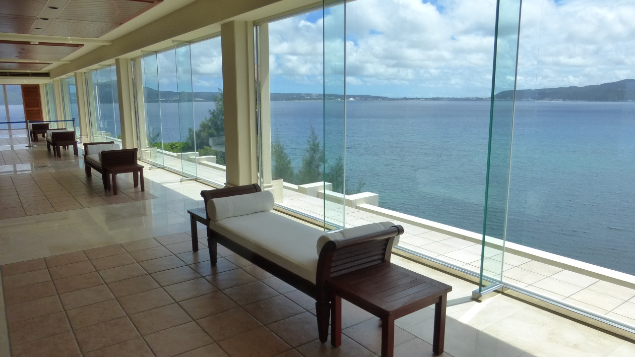 サミットでメイン使用された「サミットホール」ホワイエからの海の眺めはとても良く、沖縄サミットに参加した各国首脳も見たであろう眺望が楽しめます。
