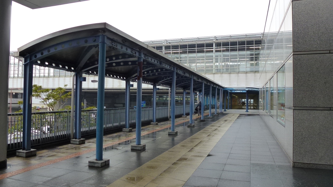 - JRの高架下の通路を通ると、雨の日でもほとんど濡れずに着ける