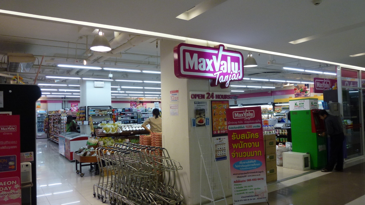 しかし、行って見ると、このユナイテッドテッドセンターの地下1Fに、モスバーガー、やよい軒(日本食)、MKレストラン(タイスキ)、S&P(タイ料理のファミレス)、東京食堂(日本食)、カフェ2店舗、ダンキンドーナツ、おむすび店の他に、ドラッグストア(ブーツ)と、24時間営業のマックスバリュー(中規模店)もあるのです。
