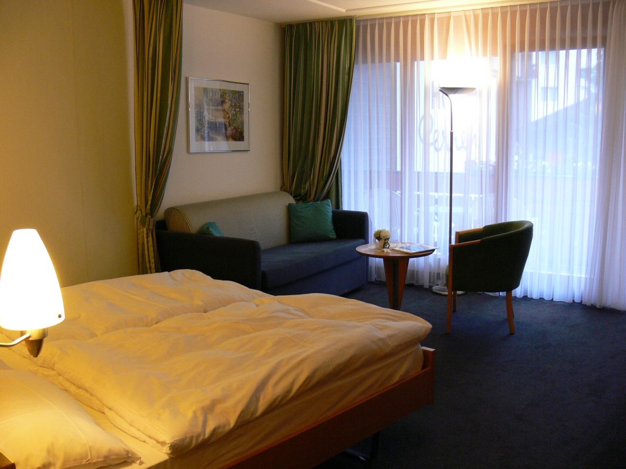 今夏のツェルマット滞在の際、4連泊しました。予約は、グリンデルワルトの日本語観光案内所でして貰いました。(日本から春頃にHPを通して予約しました。)デラックスツインルーム(31?)マッターホルンビュー指定のシングルユース ハーフボード(朝・夕食付き)で、1泊196スイスフランとお手頃価格でした。ホテルペレンは、建物が2棟あり、泊まった棟は改装されたいた新しい棟になります。2階(実質3階)の部屋でしたが、部屋からはマッターホルンを眺める事が出来ました。部屋はとても広くて感じの良いお洒落な感じでした。朝食はコンチネンタルですが、夕食は、前菜・スープ・メイン・デザートのコースでしっかりした内容で美味しかったです。ツェルマット駅からは歩いても5,6分位で、マッターフィスパ川沿いのロケーションの良い場所に建っています。ホテルの電気自動車での送迎もお願い出来ます。また、ツェルマットに行ったら再度泊まりたいホテルです。