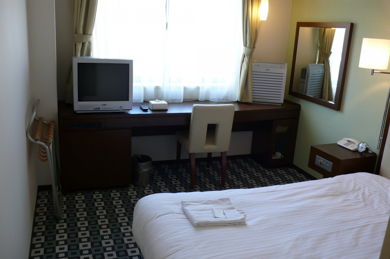 徳島出張の際に泊まったホテルです。徳島市内には多くのホテルがあるのですが、シティホテルらしいホテルはこのホテル位しかありません。楽天トラベルで、シングルだと大抵8,000円で泊まれます。駐車料金が無料なのは有難いです。部屋は18?ですが、もっと広く感じます。高層の建物なので、他の街中にあるホテルと比べると、視界を遮る物がないので眺めは良いホテルです。ただ経年化の為か、部屋の内装は一昔前の感じは否めませんが、スタッフの対応も良く、場所的にも非常に便利な為、利用価値の高いホテルだと思います。