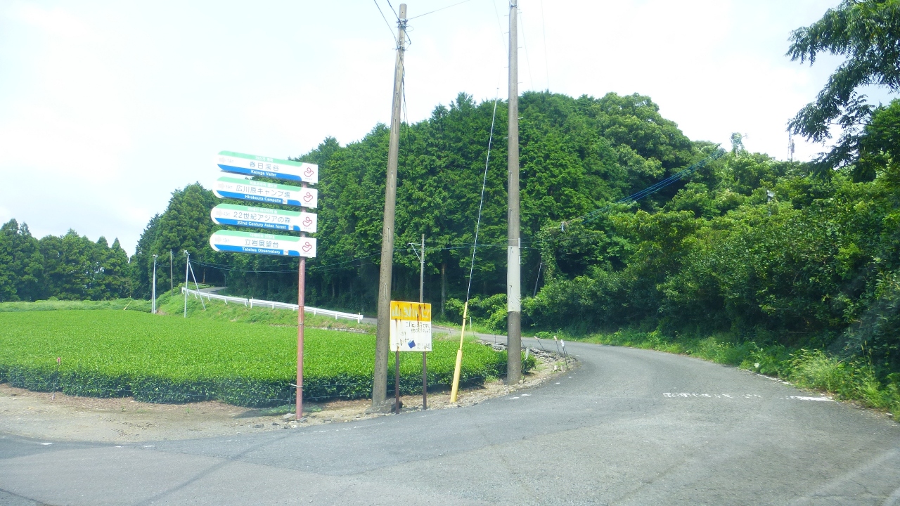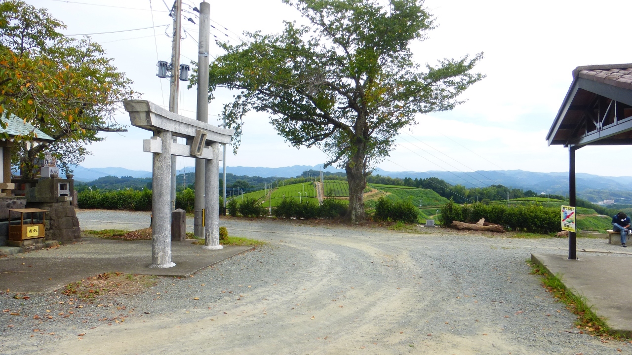 目印としては、山中の途中にある「大正屋 椎葉山荘」へ向かう道(右側)に入らず、そのまま真っ直ぐ上り坂(途中にちょっとした建物や茶畑がある)を上がって行くと、二股に出ます。その二股を山側の右側にずっと上って行くと、ここに着きました。