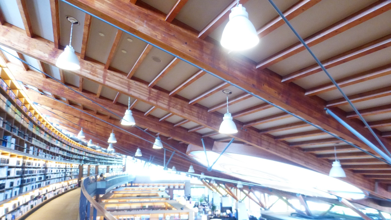 外観は、それ程デザインの凄さを感じませんでしたが、以前話題になったように、内部の建築&内装デザイン、本棚や配置デザインは確かに良かったです。