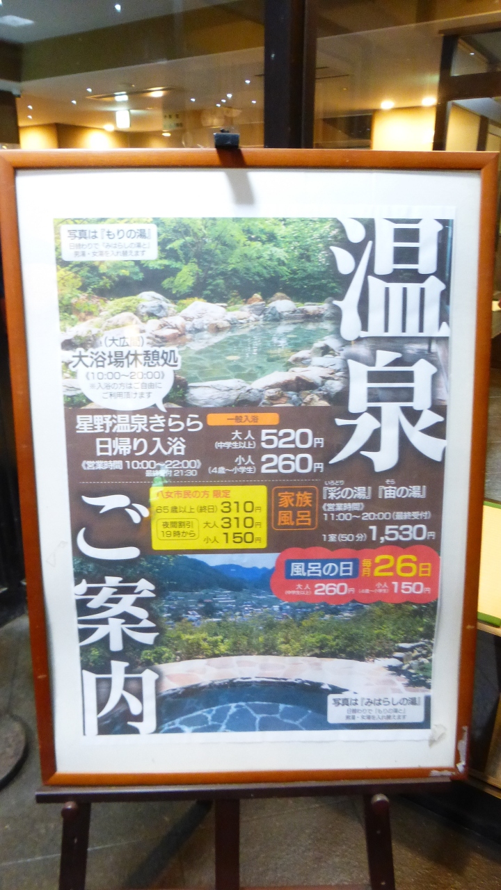 系列の「大正屋 御宿 清流」に泊まったので、ここにある温泉(しいばの湯、山の湯)に入りにやって来ました(系列旅館宿泊者は無料なのです)。