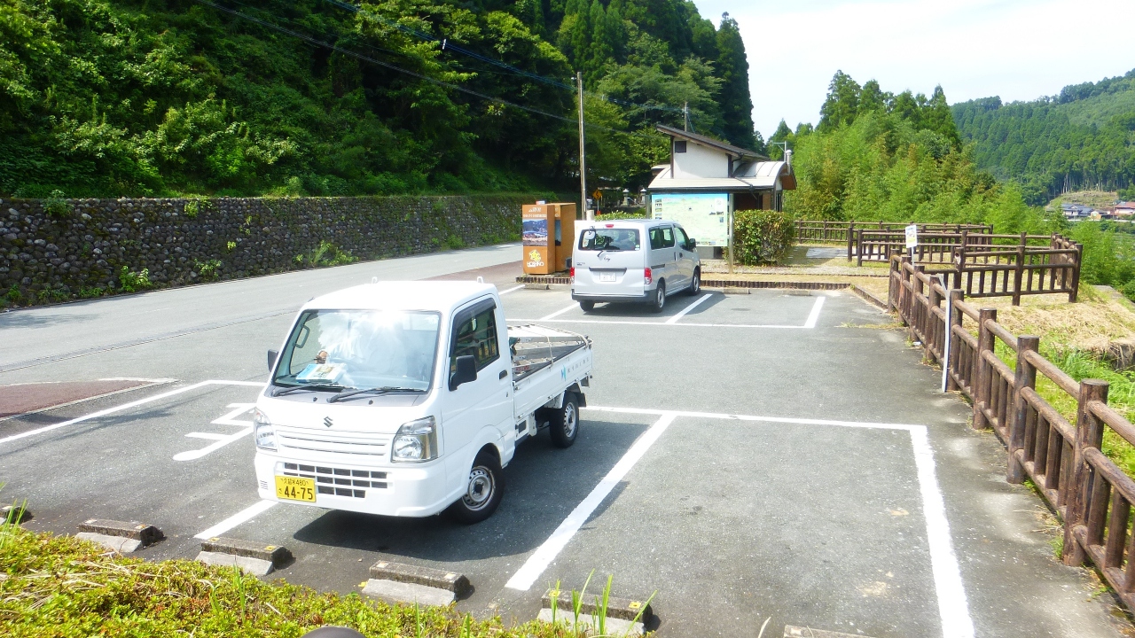 私は上流側の滝に近い駐車場(無料)に停めて行きましたが、滝の全体を見るなら、少し下流側の駐車場(無料)に停めて行く方が良いと思います。