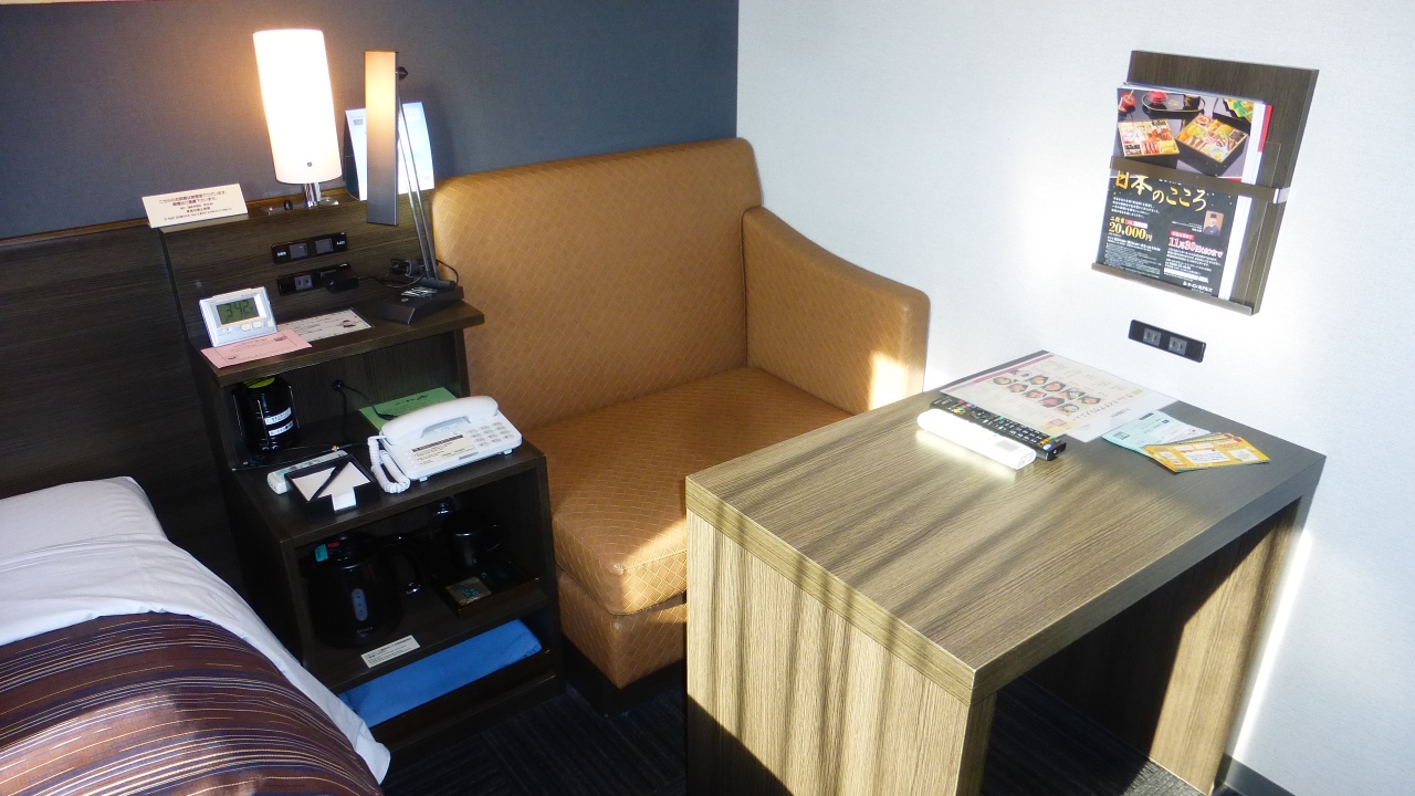 シングルルームの部屋は狭い(13平米)ながら、ベッド、デスク、ソファの配置が上手く考えられていて、余り狭くは感じなかったです。