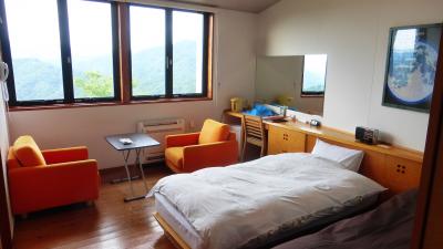 部屋の広さは9平米とかなり狭いのですが、部屋の壁紙は最近張り替えたようで奇麗でした。また、2方向2面の窓があって部屋内が明るかったですし、そのお陰で、山側海側の眺望が楽しめました。