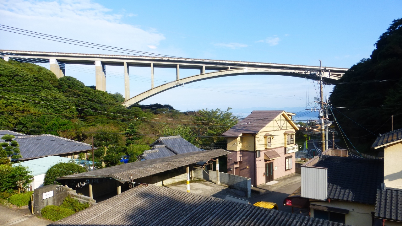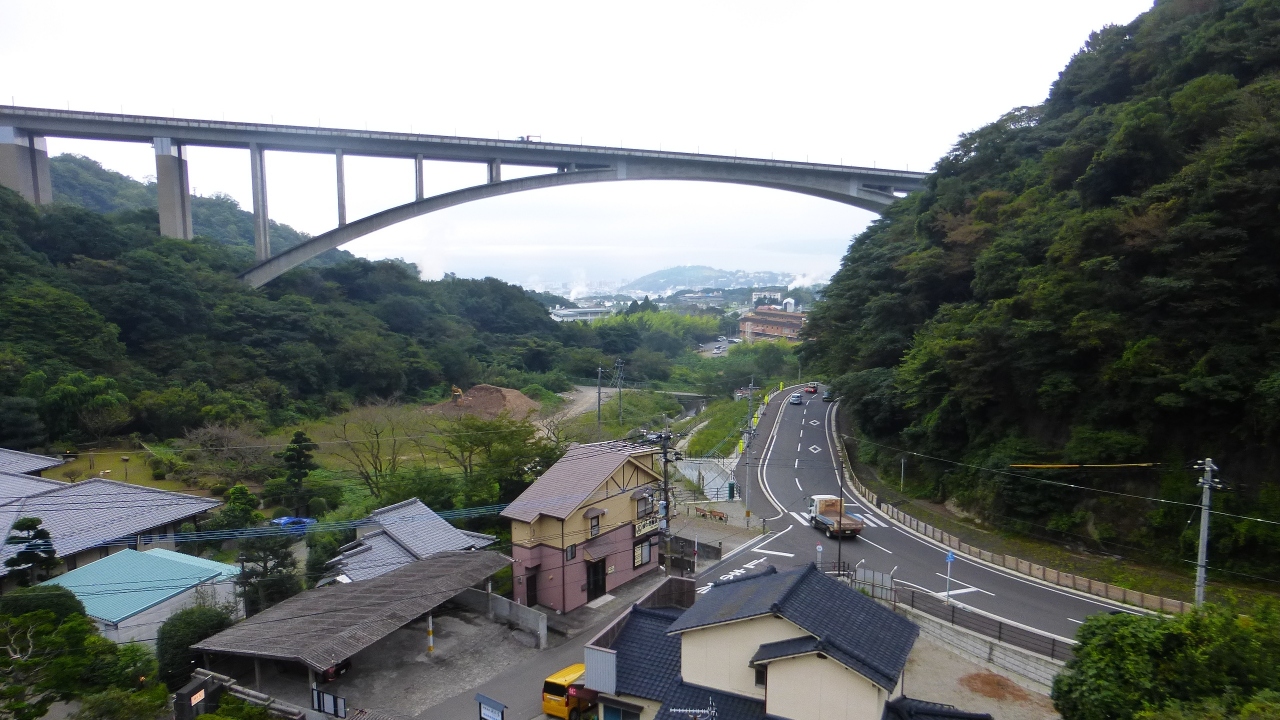 部屋からは、西九州道の別府明礬橋が眺められ、遠くに少し別府湾(海)も見られました。
