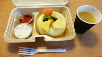 - 部屋に持って来てくれるパンケーキの朝食は少し物足りなかった。
