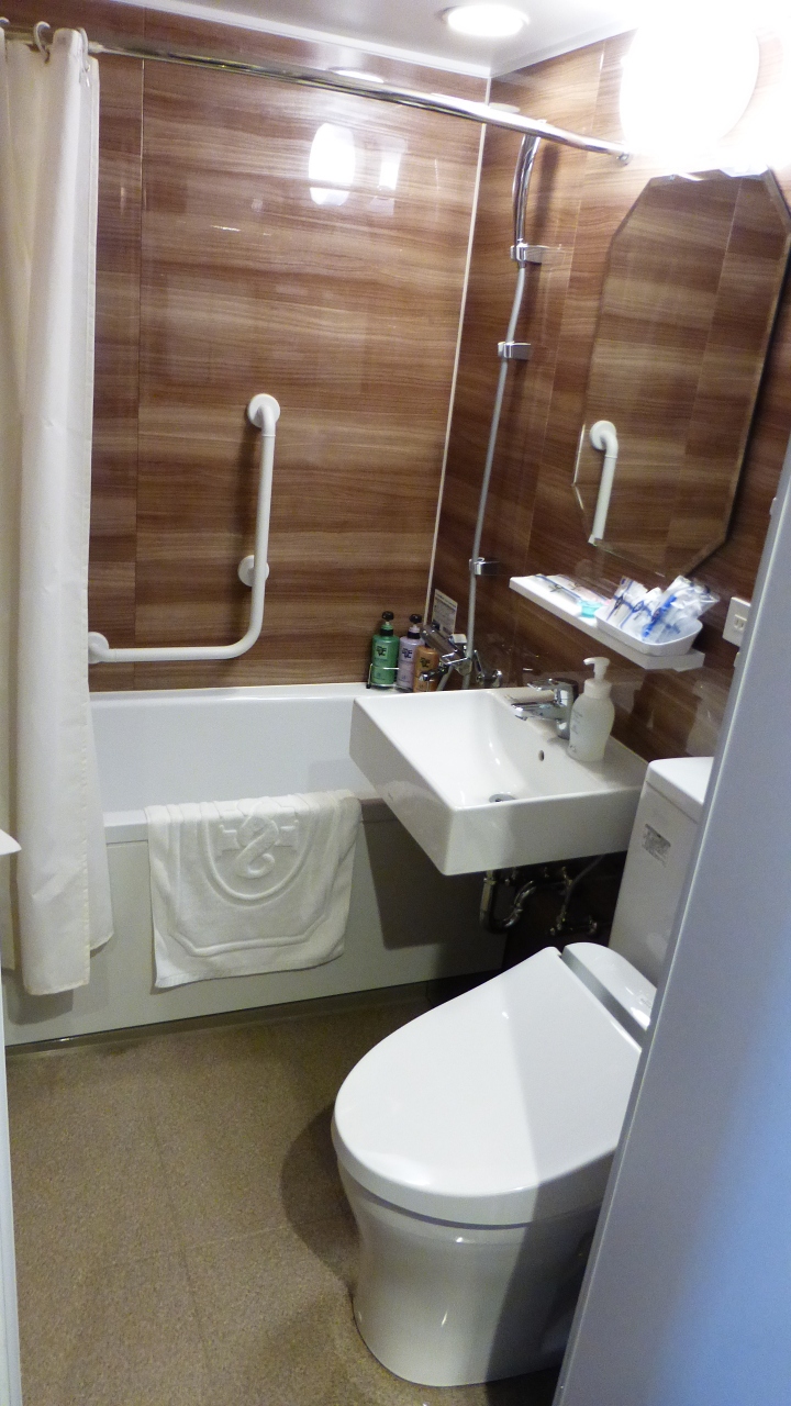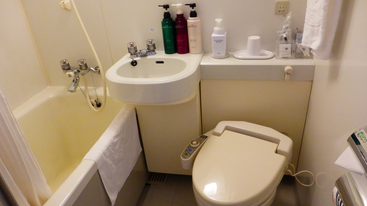 - 部屋内のユニットバスは狭いが、9Fに浴場が施設がある