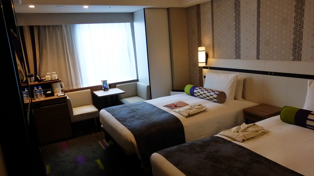 梅田1泊でのホテルを色々探していた際、宿泊日間際のタイムセール(ホテル公式サイト)で、ツインルームのシングルユースが、8,123円(オール込み)と安く販売されていたのと、大阪市内最新のモントレと言う事もあり、ここに泊る事にしました。