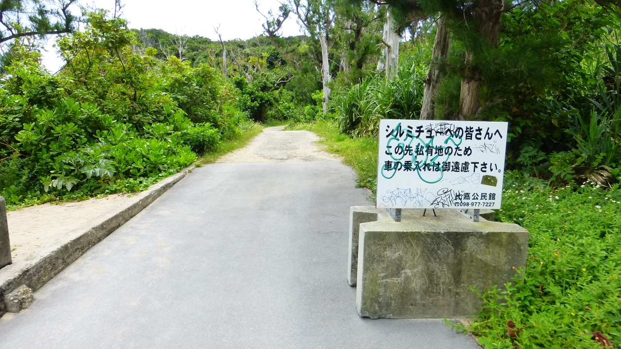 アマミチュー近くの漁港から集落に入って行くのですが、集落内の道は狭く離合困難な道です。ただ、集落を抜けると道が少し広くなり、離合可能な道になります。