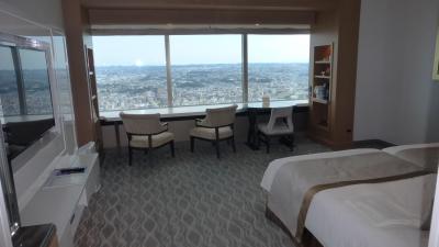 私は、チェックインの際、有料UPグレードをお願いし、同じカテゴリーのデラックスツインルーム(シティービュー:41平米)に、3,564円払ってして貰いましたが、スカイリゾートフロアアトリエ最上階の64階にアサインされました。