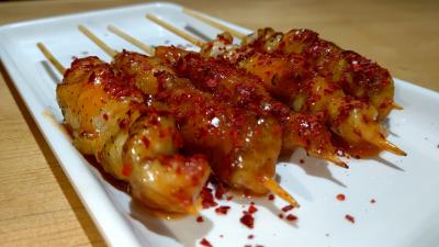 今回はちょい飲みで利用しました。お店はお初天神通りの奥の方にあるビルの地下一階なので少々見つけにくいと思います。基本的に餃子をメインとしたお店です。餃子の種類もオーソドックスなのから変わり種まで揃えています。今回は海老餃子をいただきました。味的には普通と思います。