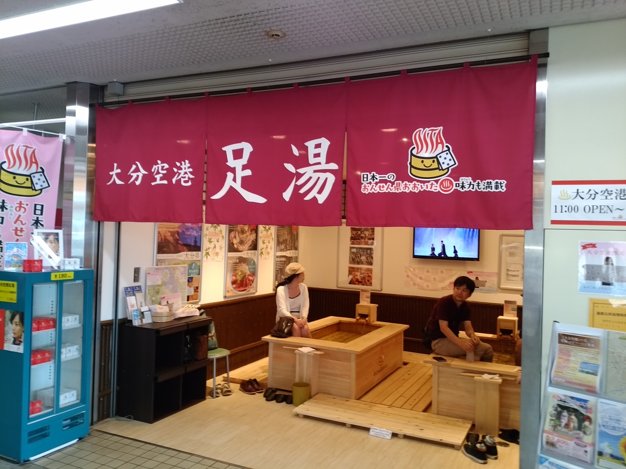 現在は温泉県として宣伝しているので、最近ですが、到着ロビーに無料で利用できる足湯施設ができました。- 旅行時期