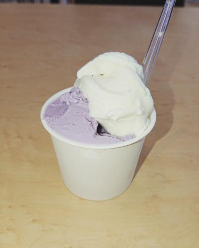 空港内でピンク色の看板なので目立ちます色んな種類のジェラートを扱っていてどれも美味しそうでしたが店員さんのおススメ「紅芋・ミルク」をいただきました。くどくない甘さが癖になります。他にも島で採れたフルーツのジェラートもあり目でも楽しめるお店です。