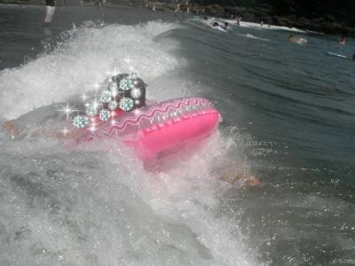 しかしちょっと進むと...こんな波☆海といったら波乗り♪いい感じに乗っ...