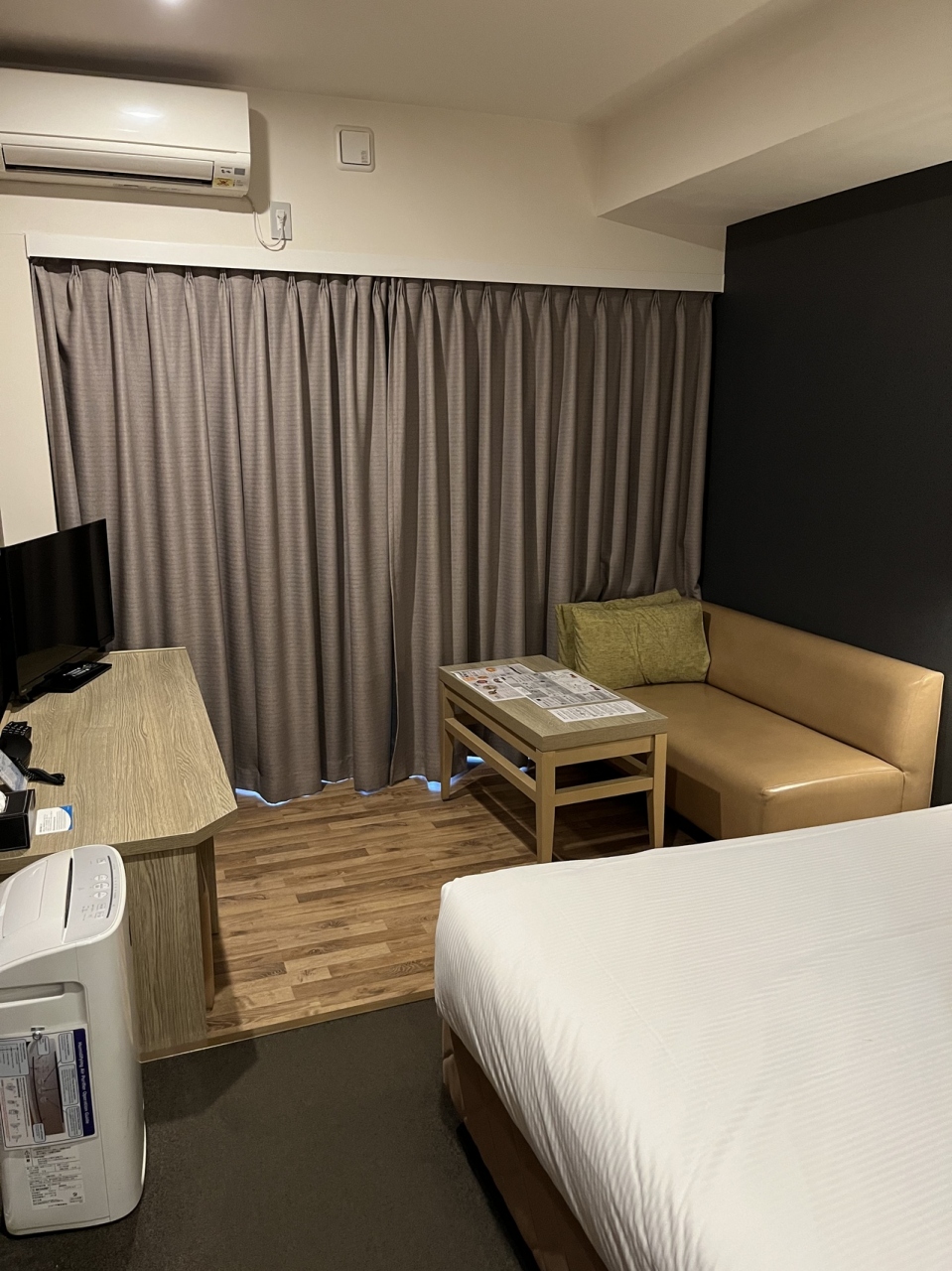 新しくてきれいなホテル。駅からは離れていますが許容範囲内。朝食も種類豊富で美味しいし、4時から12時まで食べられます!プレミアムダブルだったからかウェルカムフルーツやドリンクをいただけました。コーヒーメーカーもあってすごくよかったです。少し車の音が気になったかな。