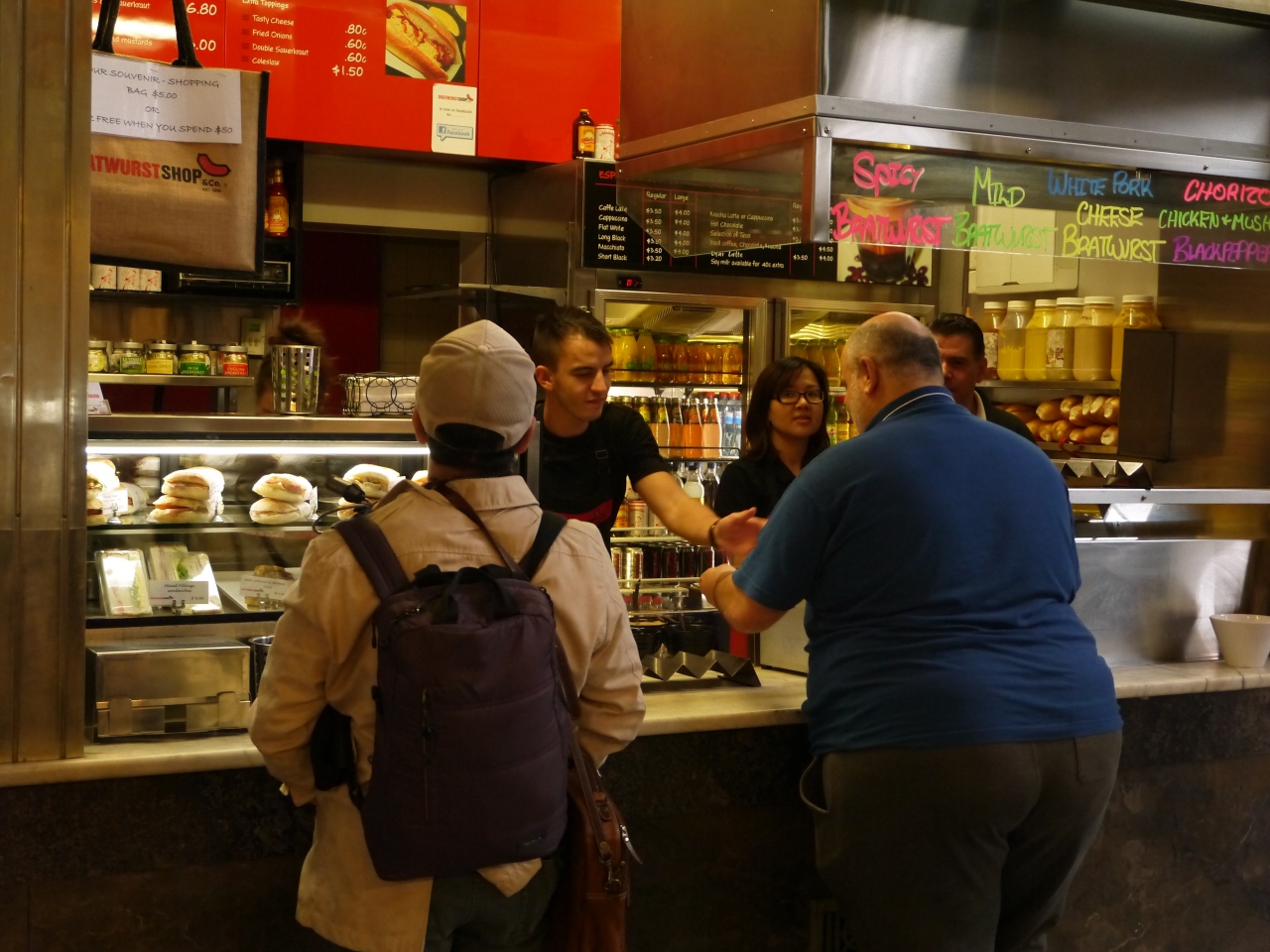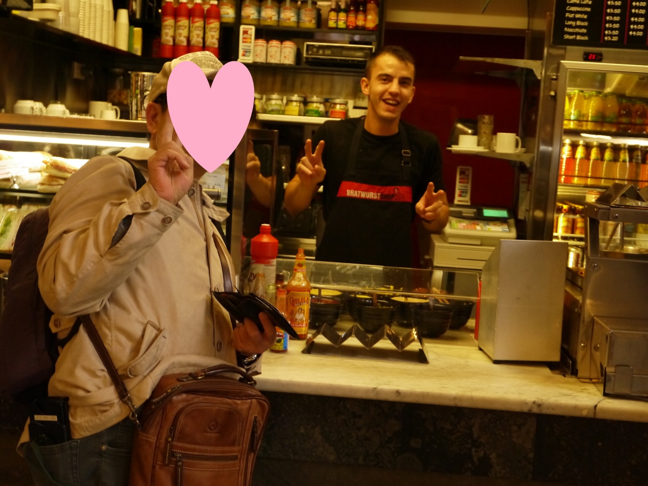 クィーン・ビクトリア・マーケット内にあるハンバーガーの店です。前回来たときは、あまりにもたくさんの人が待っていたので、買えず帰国してから口コミを見てみると評判のお店のようで、今回、寄ってみました。本当は、ソーセージ入りを買うつもりだったのですが、つい目の前にあったチキンを指さして買ってしまいました。これはれでおいしかったのですが、後から後から来るお客さんは、焼きたてのソーセージいりを注文しており、ちょっと失敗してしまいました。
