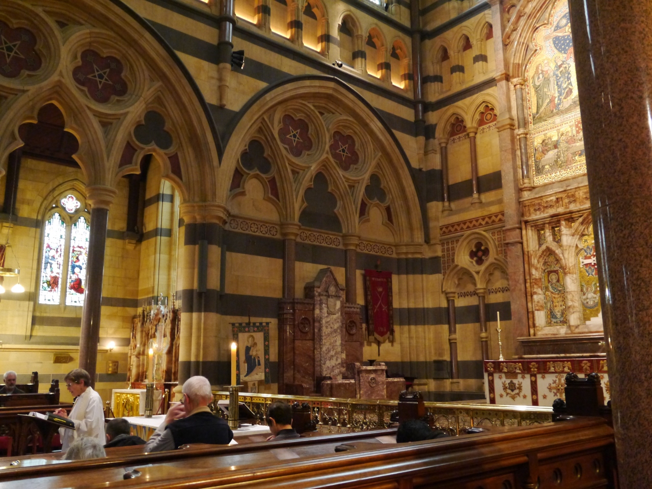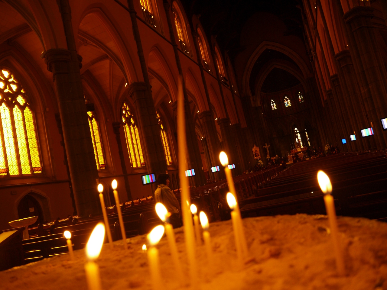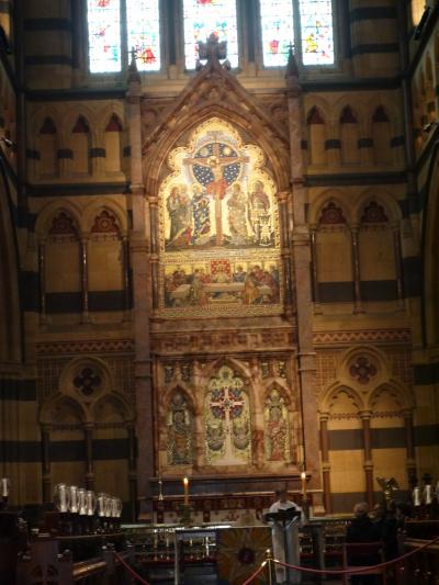 前回、早朝の訪問だったので改めてライトアップと教会内部の見学のため、行ってきました。夜間ライトアップしているとの口コミを見たのですが、やっていませんでした。翌日、昼間に行き、教会内部を見てきましたが、生徒さんの洗礼の予行練習をしていました。中のステンドグラスもいいですが、この教会は、外周を一回りして、外観を楽しむのがいいでしょう。