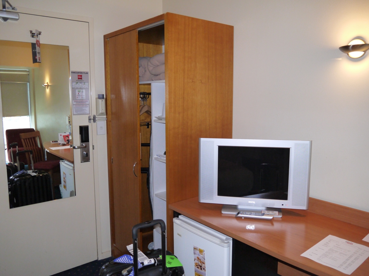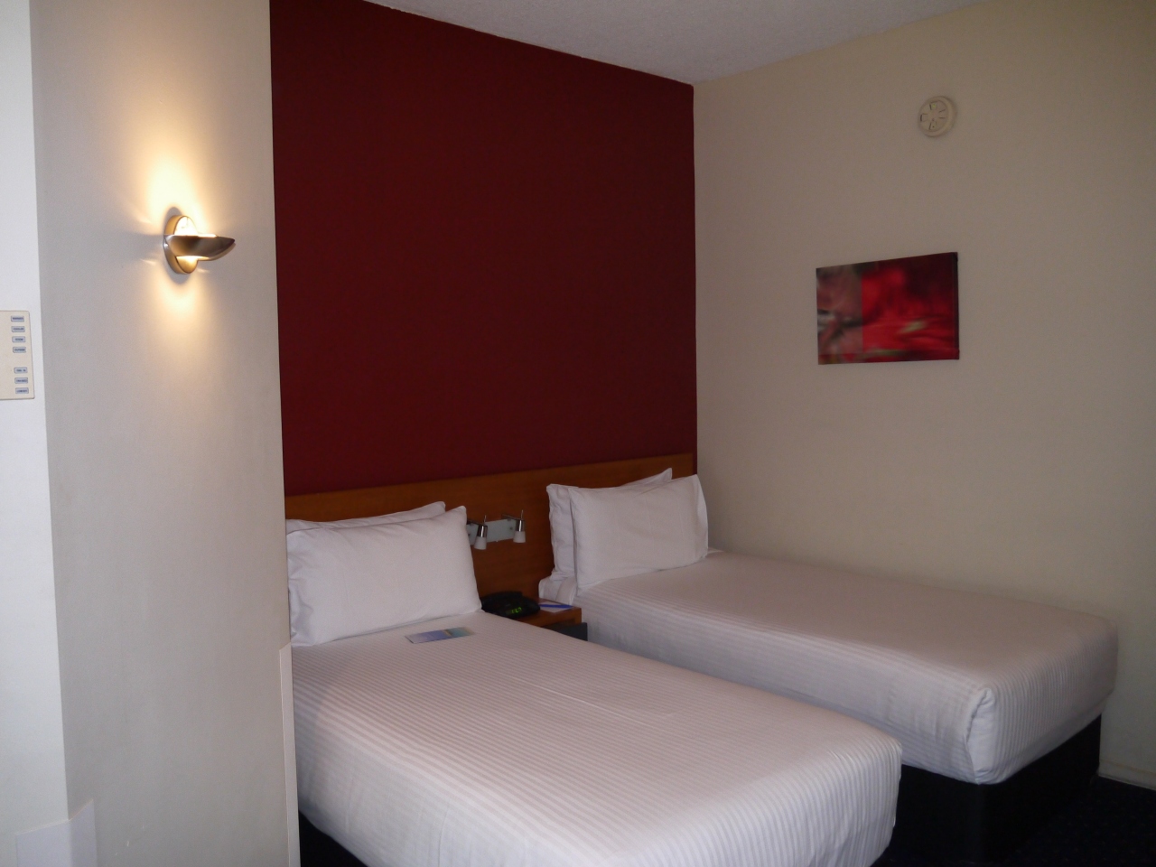 サザンクロス駅から徒歩で5分程度です。今回は、街歩きでトラムを頻繁に使用したので、このホテルは絶好の立地条件でした。高級ホテルである前回宿泊したヒルトンと比 べるとビジネスホテル風のこのホテルは、部屋の広さや設備等の点で落ちますが、その欠点もありあまるほどの立地条件です。フロントはあまり大きくはないですが、その分スタッフは目配り気配りしてくれてでかけるたびに声をかけてくれました。