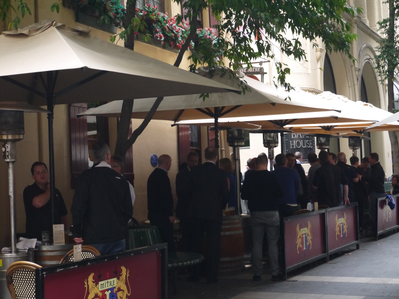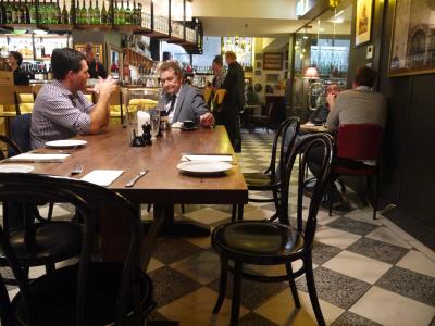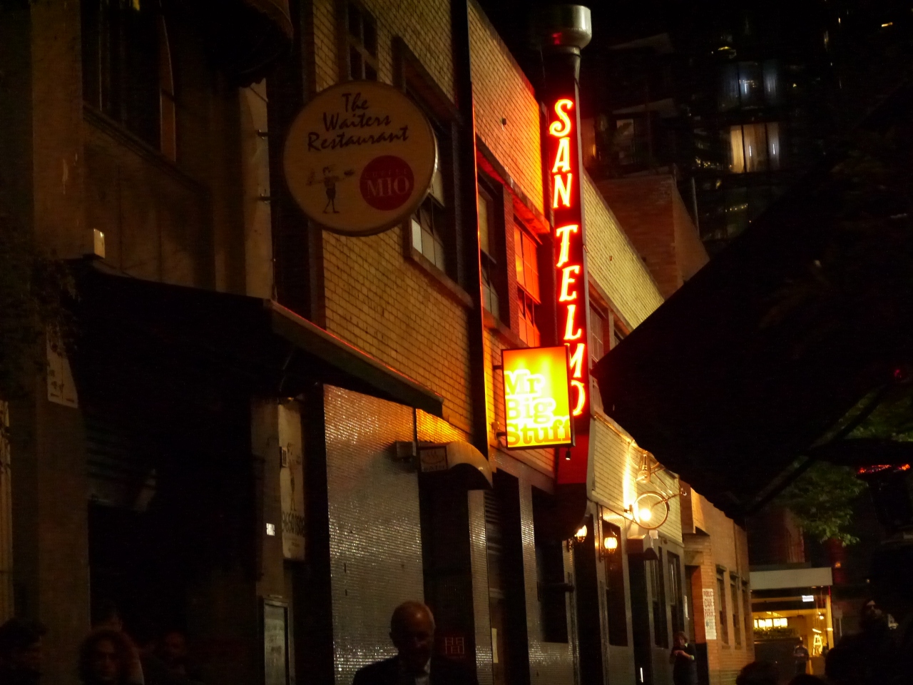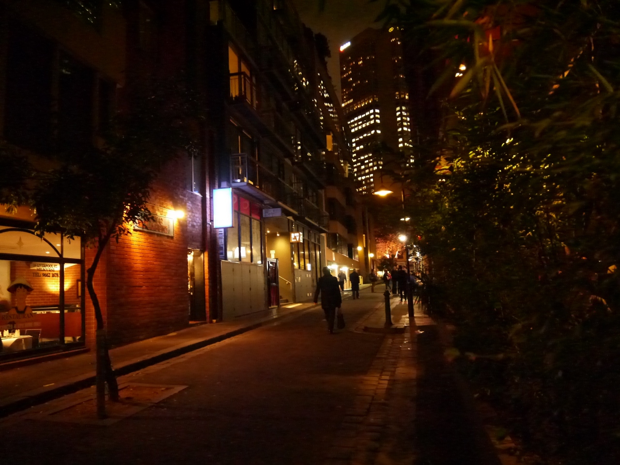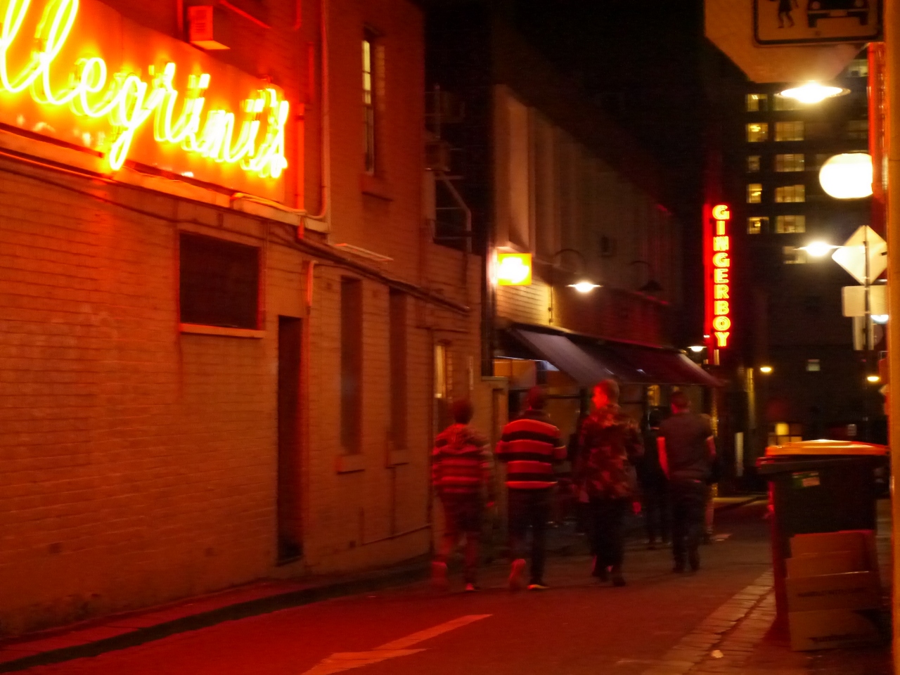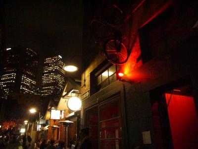 クロスリー・ストリートでのカフェやリバプール・ストリートでの料理を楽しんだ後に、メルボルンの妖しげなナイトライフを垣間見に行きました。1920年代の禁酒法時代の雰囲気を残した居酒屋があり、横町からたばこを吸いに出てきたお父さんはギャングっぽく、背中を撃たれそうな妄想をしてしまいました。もちろん、そんなことはなく陽気なオージーたちが賑やかに飲んでいましたが、見かけた客層は比較的中高年層が多かったようです。