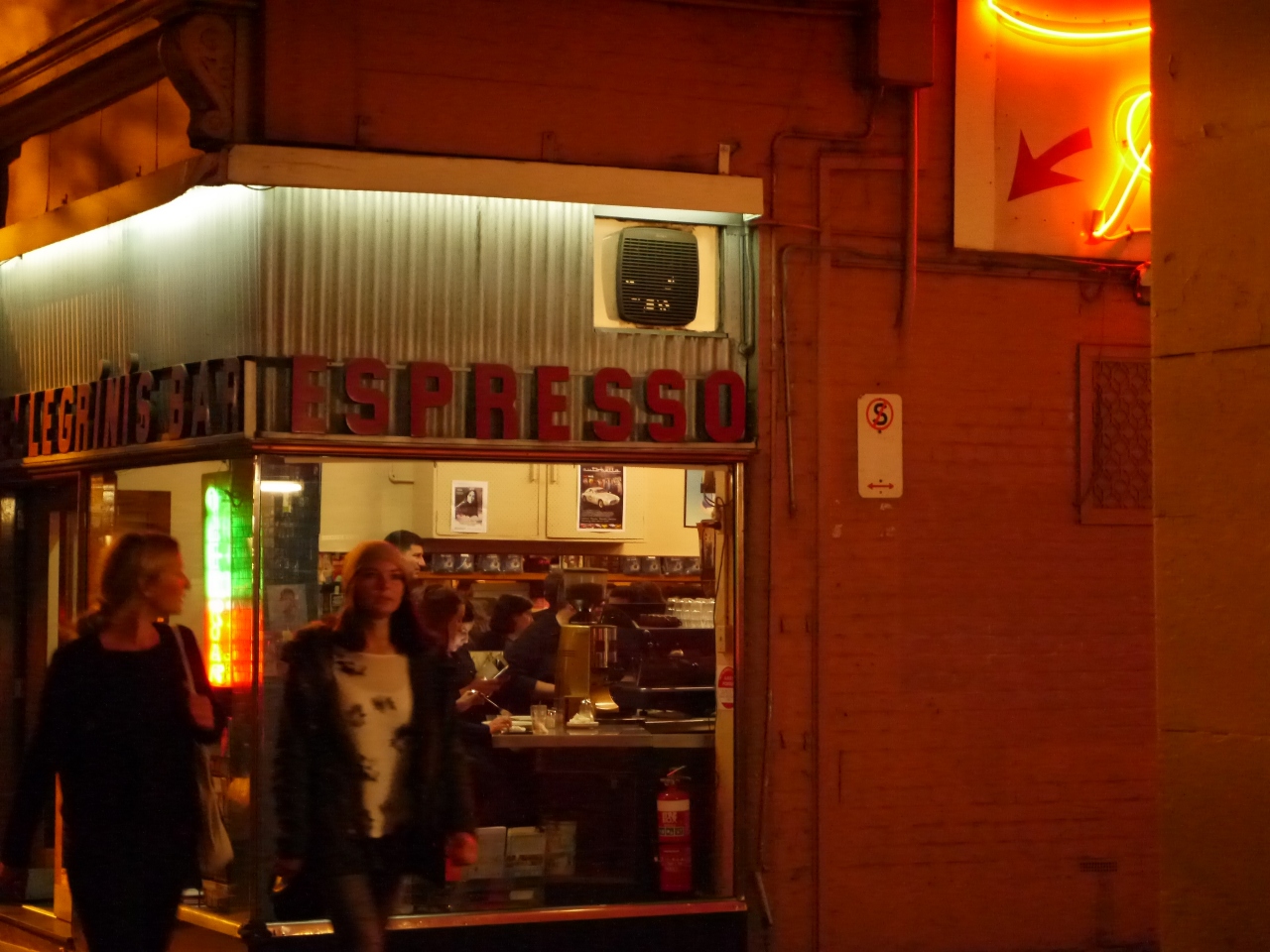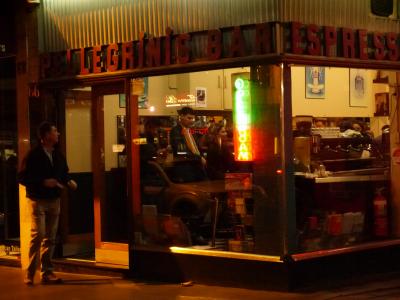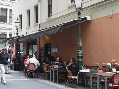 カフェ文化が根付いているメルボルンには、有名なカフェが数多くありますが、このクロスリーストリートでは、Pellegrini's Espresso Bar が最も有名だそうです。決してきれいな店舗ではありませんが、建物の古さに何か頑固に伝統を重んじる雰囲気が感じられるこの店をはじめ周辺には、多様なカフェが並んでいます。