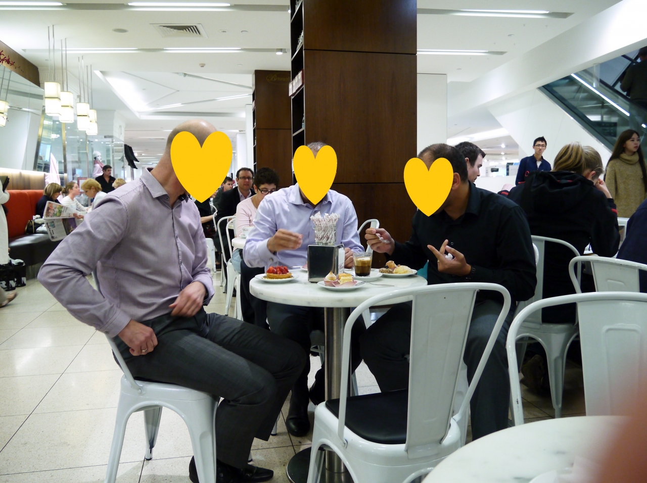 デパートの中の店舗なので気候に左右されず、また、女性にとっては、周囲の店やMyerMelbourneではじめ、周囲の店でのウィンドーショツピングの後にケーキを楽しむことができます。