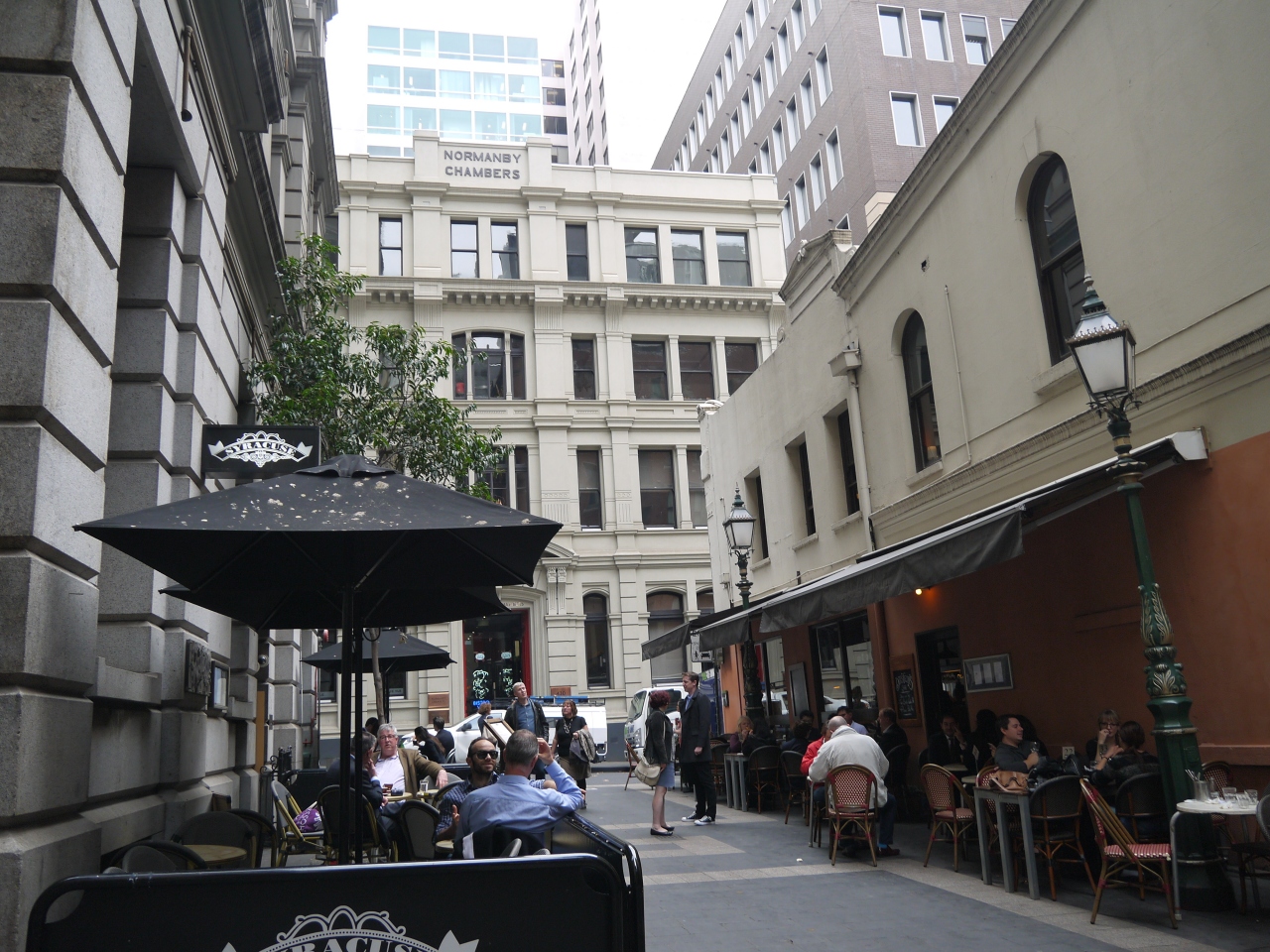 多国籍料理店が立地するストリートです。この辺りは、フィッツロイガーデン、セントパトリック大聖堂、旧財務省ビル、州議事堂などがあるので、これらを観光した後、クロスリーストリートでカフェに入り、ここで料理を食べた後、マイヤーズプレイスで軽くお酒を嗜むといったセット観光がお勧めです。