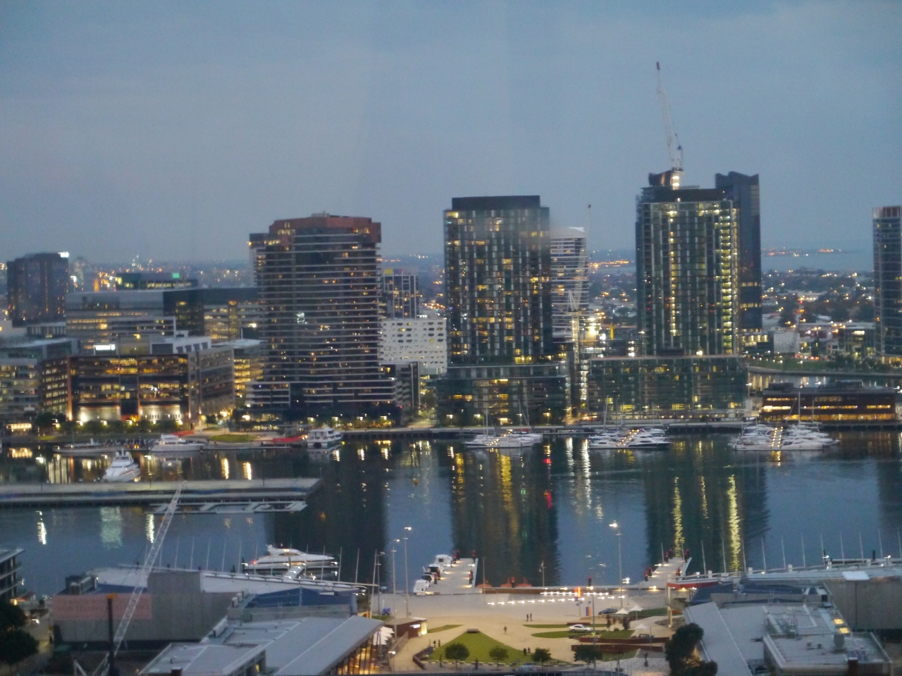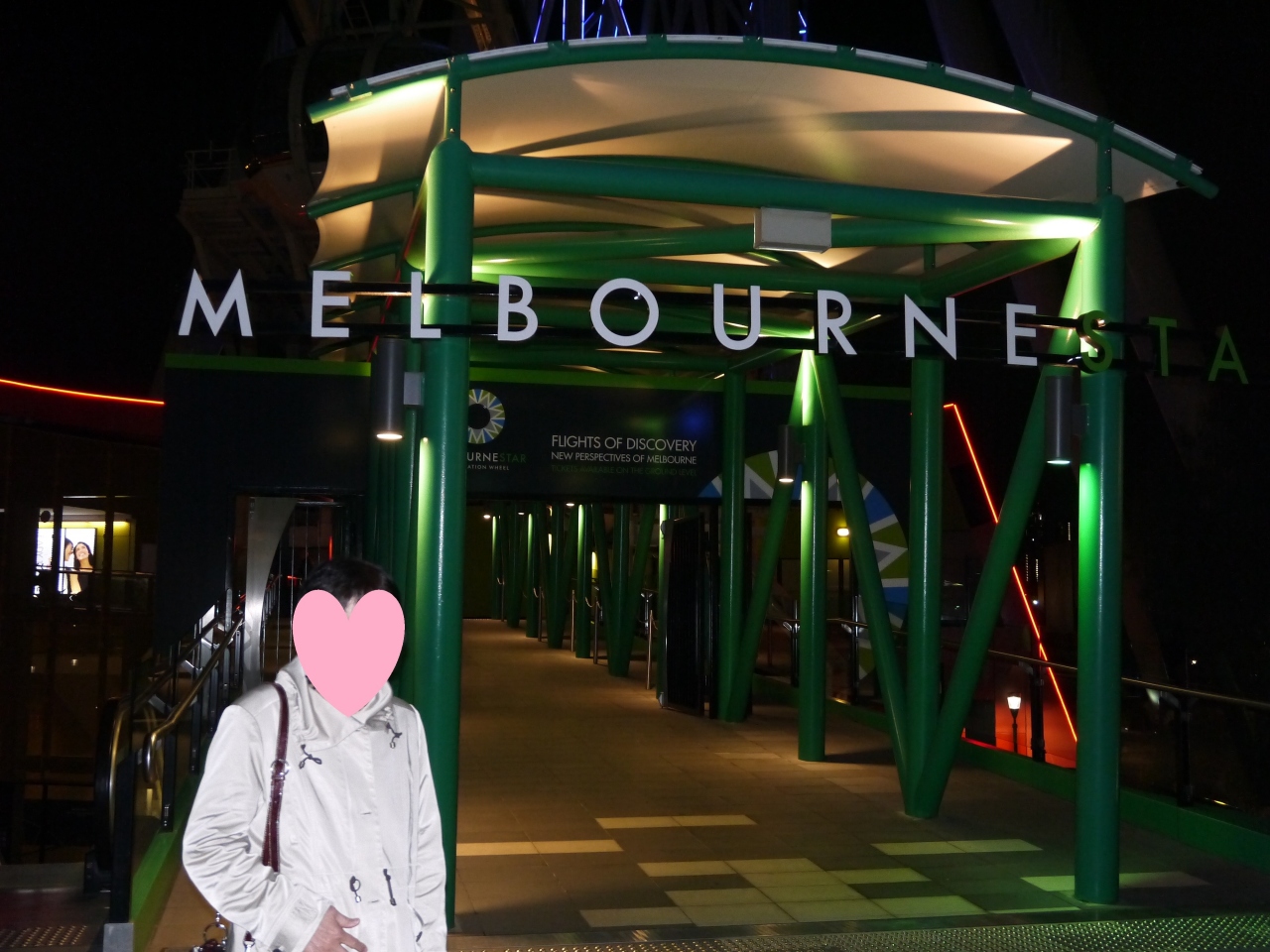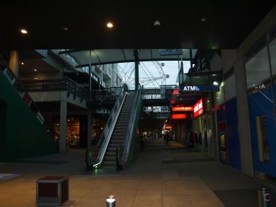 前回、メルボルンに来て最初にスカイバスから眼に入ったのがメルボルンスターのライトアップでした。今回、実際に乗ってみようとシティーサークルでドッグランドにいってきました。金曜日の夜の割には、ショッピングセンターには人がおらず、メルボルンスターも待たずに乗ることができました。結構広い箱に二人だけで、見る夜景はカップルには最適ですね。(事実、カップルでの利用が多いようでした)