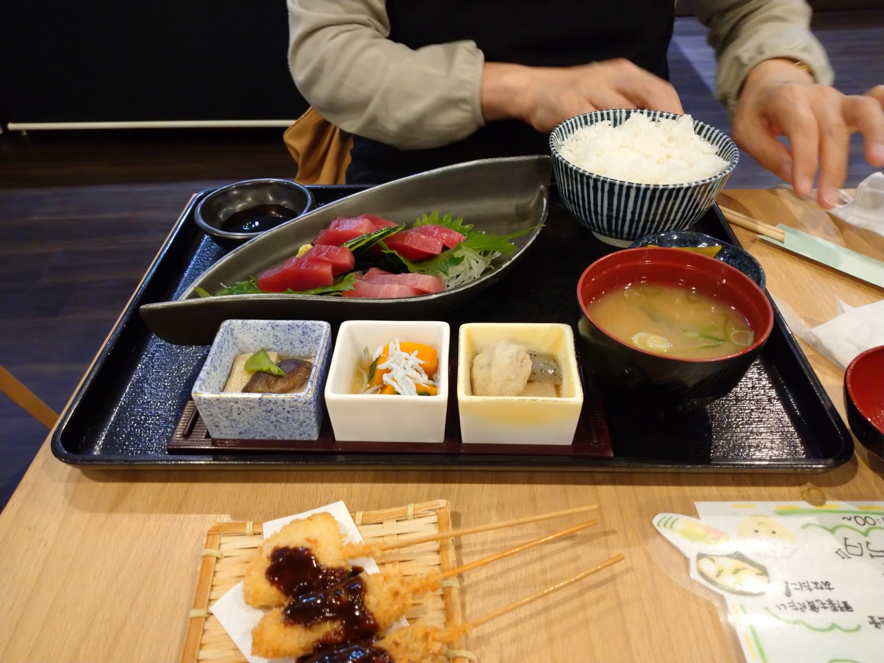 鯛めしの炊き込みご飯の味は想像がつくのですが、ここのは宇和島鯛めしで、鯛の刺身を生卵と出汁で食べるというもので海鮮丼風で、初めての食体験でした。もともとは漁師飯ということで、漁師の方がいちばんうまい食べ方で作っているからでしょうか、鯛のうまみと出汁のうまみでおいしさが重層的でした。