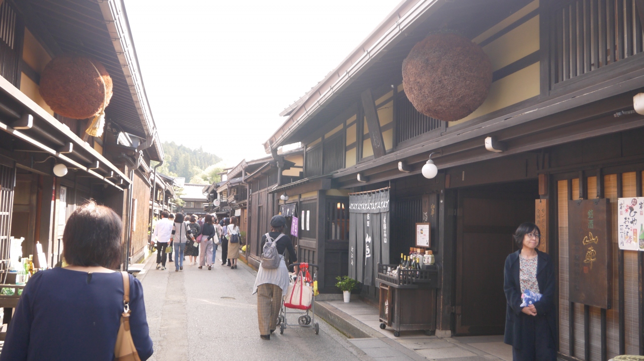 個人的な感想ですが、飛騨高山って地名からなんだかわくわくしちゃいます。その中でも古い街並みが保存されているさんまち通りは、観光客に人気のある名所です。それだけにかなり混雑していました。人が入らないように写真を撮ることには苦労します。五平餅、みたらしだんご、飛騨牛の肉まん、串焼き、寿司などがあって食べ歩きに最適でした。