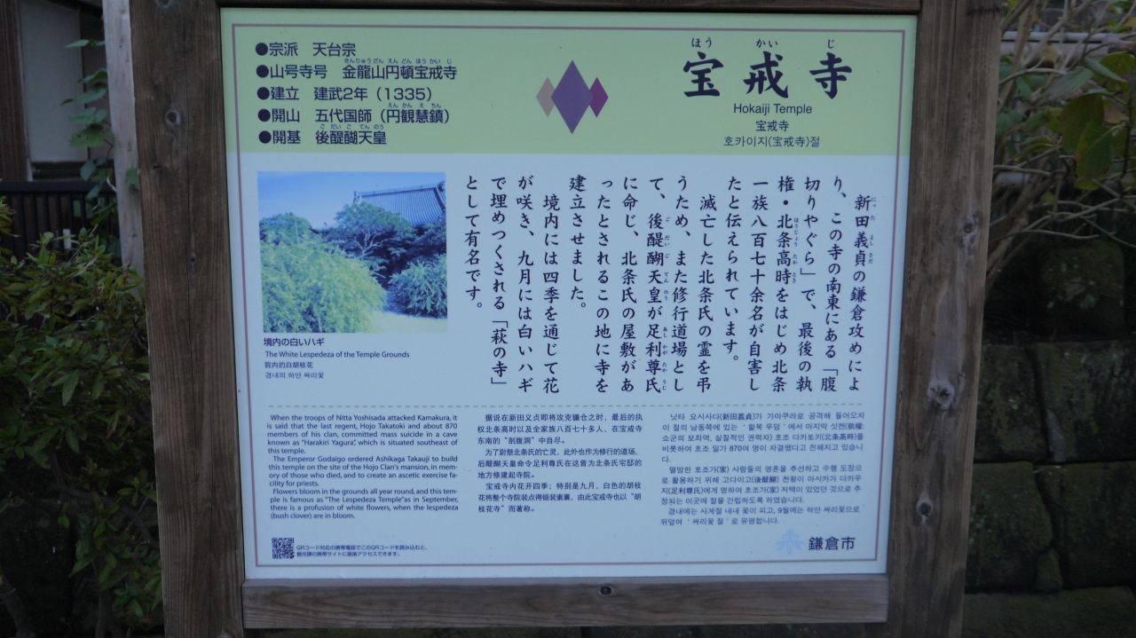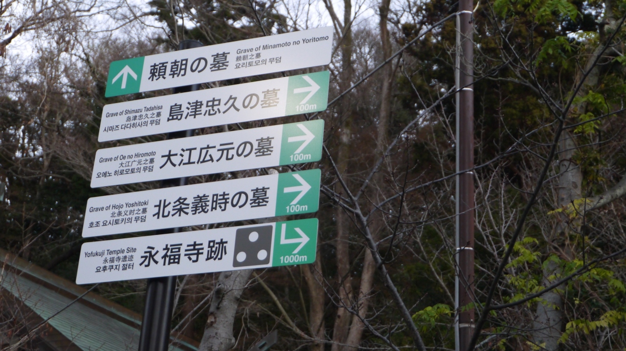 鶴岡八幡宮から東方へ徒歩で10分程度の場所にあります。墓は、小高い丘の中腹にひっそりと建っており、質実剛健を旨とした武士の棟梁らしい墓です。ここにたたずんで、武家政治の開祖の生涯に思いをめぐらせるのもいいでしょう。石段の上がり口には、武士の信仰の中心となった頼朝の法華堂跡もあります。