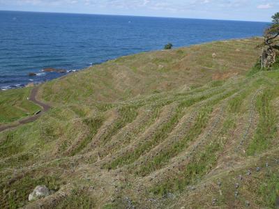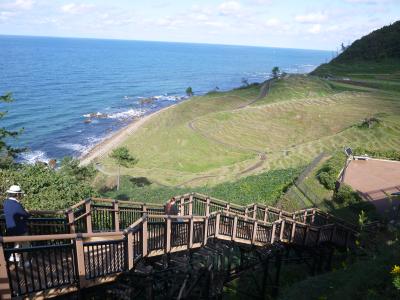 日本唯一の砂浜ドライブウェイとして有名な千里浜なぎさドライブウェイです。安全に走行できないと管理者である石川県が判断すると通行規制されることがあるとのことでしたが、当日は、天気がよく走行できました。のと里山海道千里浜ICと今浜IC間の8㎞の短い区間でしたが、珍しい体験ができて良かったです。この時期は、釣りのため駐車している車も多く、人の往来には注意が必要です。通りすがりにみかけただけですが、乗馬体験もできるようです。