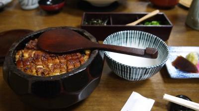 「ひつまぶし」は、あつた蓬莱軒の商標登録だそうです。神宮店は、熱田神宮正門のすぐ側にあります。妻は、刺身定食、私はもろんひつまぶしです。本場のひつまぶしはやっぱりおいしかった。札幌で食べるひつまぶしより、少し焼き焦げがついて香ばしく、たれは、甘さ控えめです。