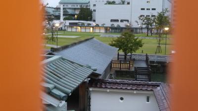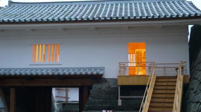 早朝の散歩に駅前のホテルから福井城趾に来てみました。県庁と県警の建物の間を抜けると石垣が見えますが、昔の遺跡は見当たらず、こじんまりとした城趾です。しかし、新たに復元された山里口御門は、藩主が御廊下橋を渡り、山里口御門を通って本丸へ向かったと考えられているそうです。2階に櫓が載る櫓門、棟門、石垣上の土塀が復元されていましたが、櫓門の内部は、早朝にもかかわらず、電気がついていていることができました。ただ、HPには、開館は7:00からとなっており、本当はまだ入れなかったのかも?