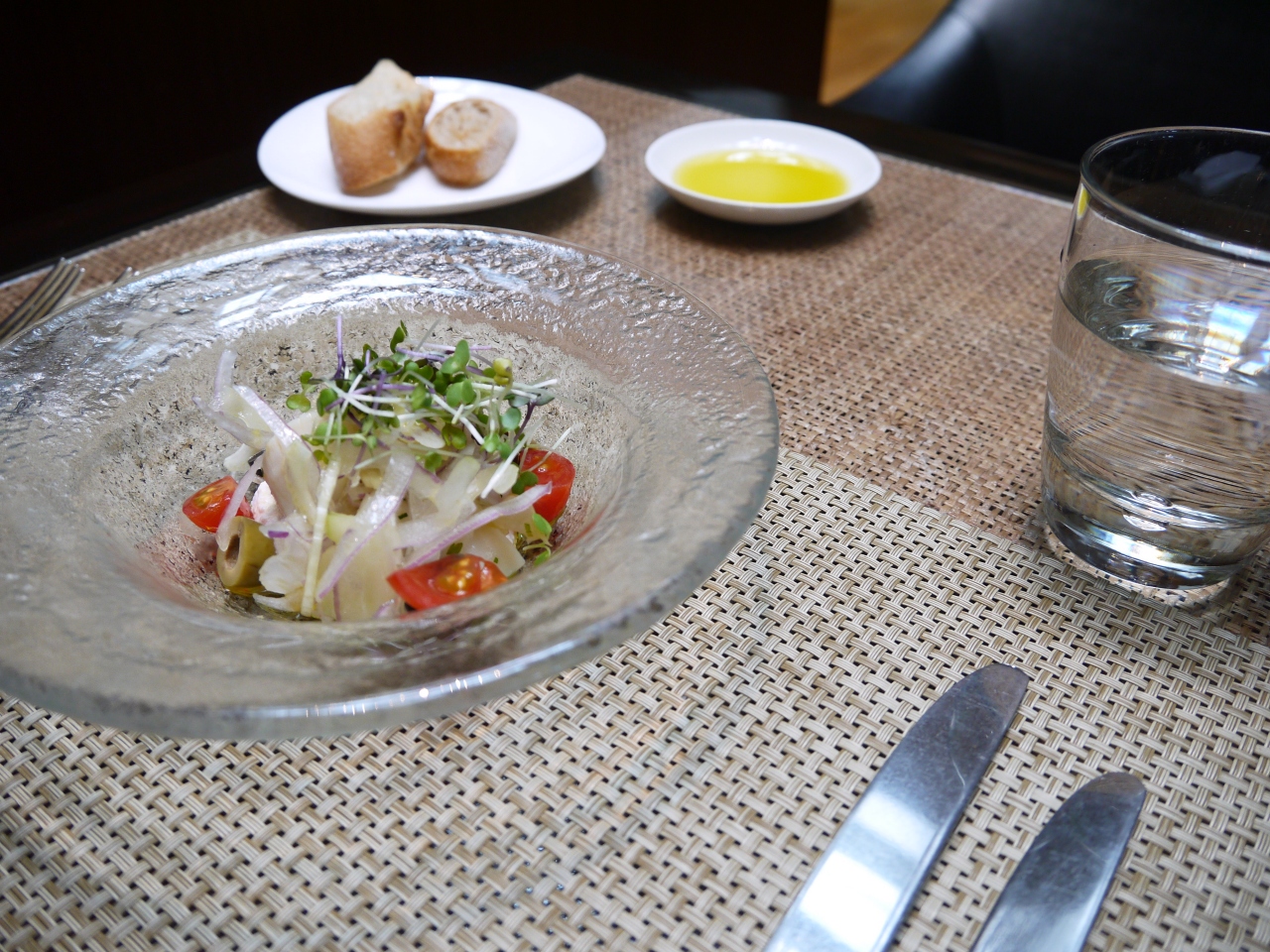 ストリングスホテル東京インターコンチネンタルのレストラン&バー「ザ・ダイニング ルーム」で、1月から3月一杯までオーストラリアから届く豊かな食材を使った「魅惑の大陸・オーストラリアグルメフェスタ」を開催中ということで、どんなオーストラリア料理がでるのか上京の際に寄ってみました。12時前に到着しましたが、私が5組目ということで、予約なしでしたが30分弱の待ち時間で席に着きました。週末ランチコースのシドニー 4,000円(税、サ抜き)を頼みました。前菜にアワビと魚介のサラダ仕立て、メインは仔羊背肉と野菜のハーブグリルを選択、デザートはチーズケーキでした。前菜の魚貝を使用したサラダは、魚貝類と野菜がうまくマッチしていました。メインの仔羊背肉は、どちらかというとあっさりのイメージがあるラムですが、この肉は脂が乗っていて、ハーブ野菜にかけたソースとが一体となっておいしさを醸し出していました。素材のおいしさと一手間かけた日本的なうまさがマッチングした料理でした。ただ。厨房が忙しかったのか、メインがでてくるのに時間がかかったことが残念ですが、事前に謝罪があったことと料理がおいしかったので、減点は加減しました。