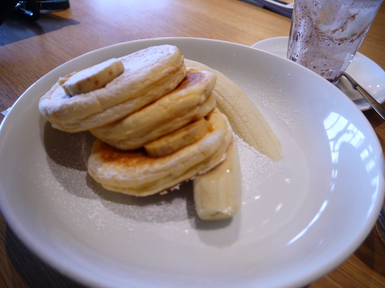 パンケーキオンザロックスのパンケーキと比べると、軽いような感じがします。ちょっとふわふわ感がある中にも歯ごたえも残している感じでしょうか。ロックスで私が注文したものより、甘過ぎずよかったのですが、3枚目はちょっとボリュームが多くて、くどく感じてしまいました。2枚ぐらいがちょうどよさそうです。本店には行けませんでしたが、本店と同じ味(のはず)を味わってきました。- 旅行時期