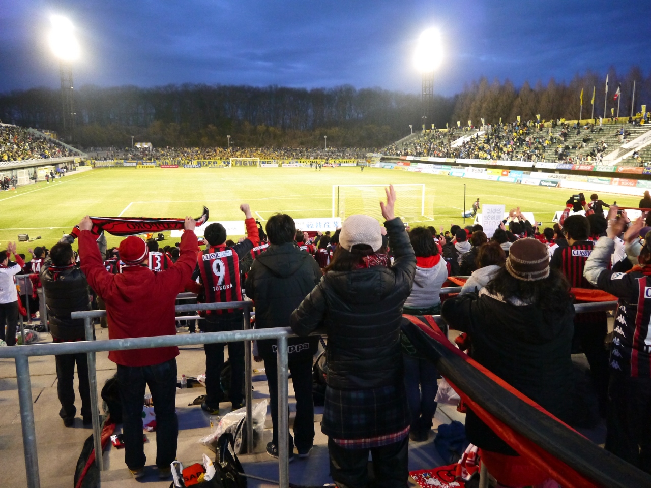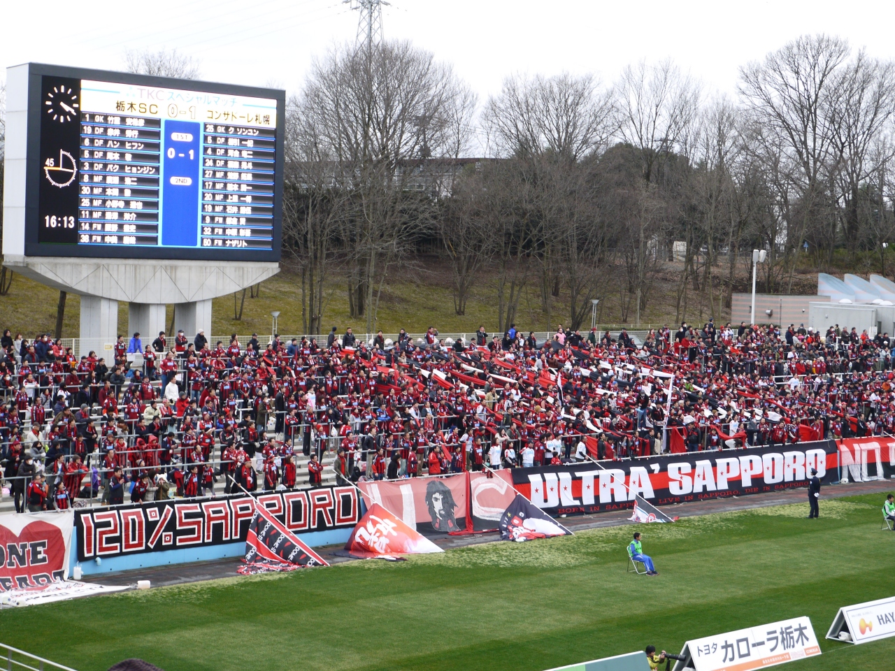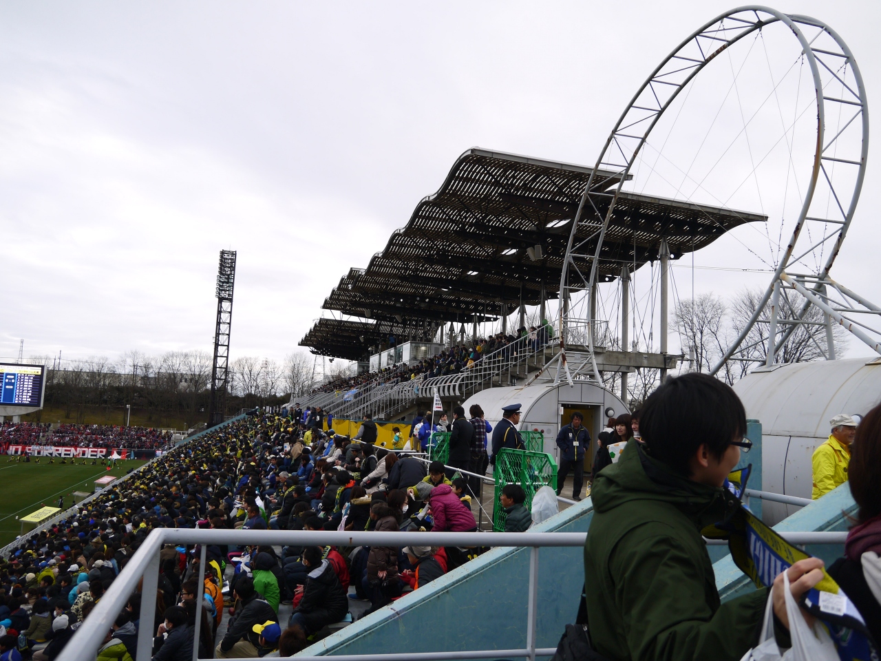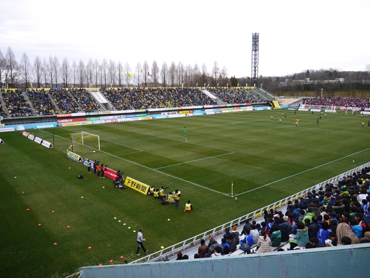 コンサドーレ札幌と栃木SCの開幕戦観戦のため、訪問しました。宇都宮駅から無料バスがでていて、ありがたかったです。駅には、無料バスは東口とのプラカードを持ったおじさんが教えてくれましたが、高架橋のバス表示の階段を下りていくと、路線バスしか見あたりません。無料バスは、高架橋一番奥の右手の階段を下りた、餃子屋さんの側にありました。高架橋の降り口にその旨、表示していただけるとわかりやすいと思います。グリーンスタジアムまでは、30分弱で到着しました。スタジアム入り口には、地元名物の食べ物もあり、昼食を食べたばかりでなければ、食べてみたいものも多かったです。スタンドに雨よけがないので、強い雨の時には、ちょっと大変かもしれません。
