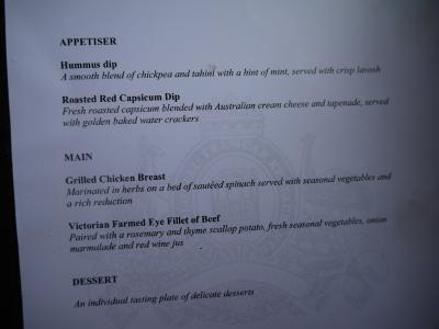 帰国日にザ・コロニアル・トラムカー・レストランでアーリーディナーをいただきました。17:45にCrown Casino付近の停留所から発車し、セントキルダ湾まで往復する90分あまりのアーリーディナーです。