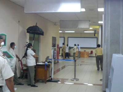 デンパサール空港の検疫の様子です。一応サーモロジーで確認していますが、...