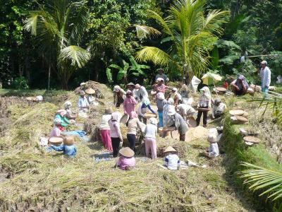 ウブドを北上していくと、なかなか日本では見られない稲刈りや脱穀などの作...