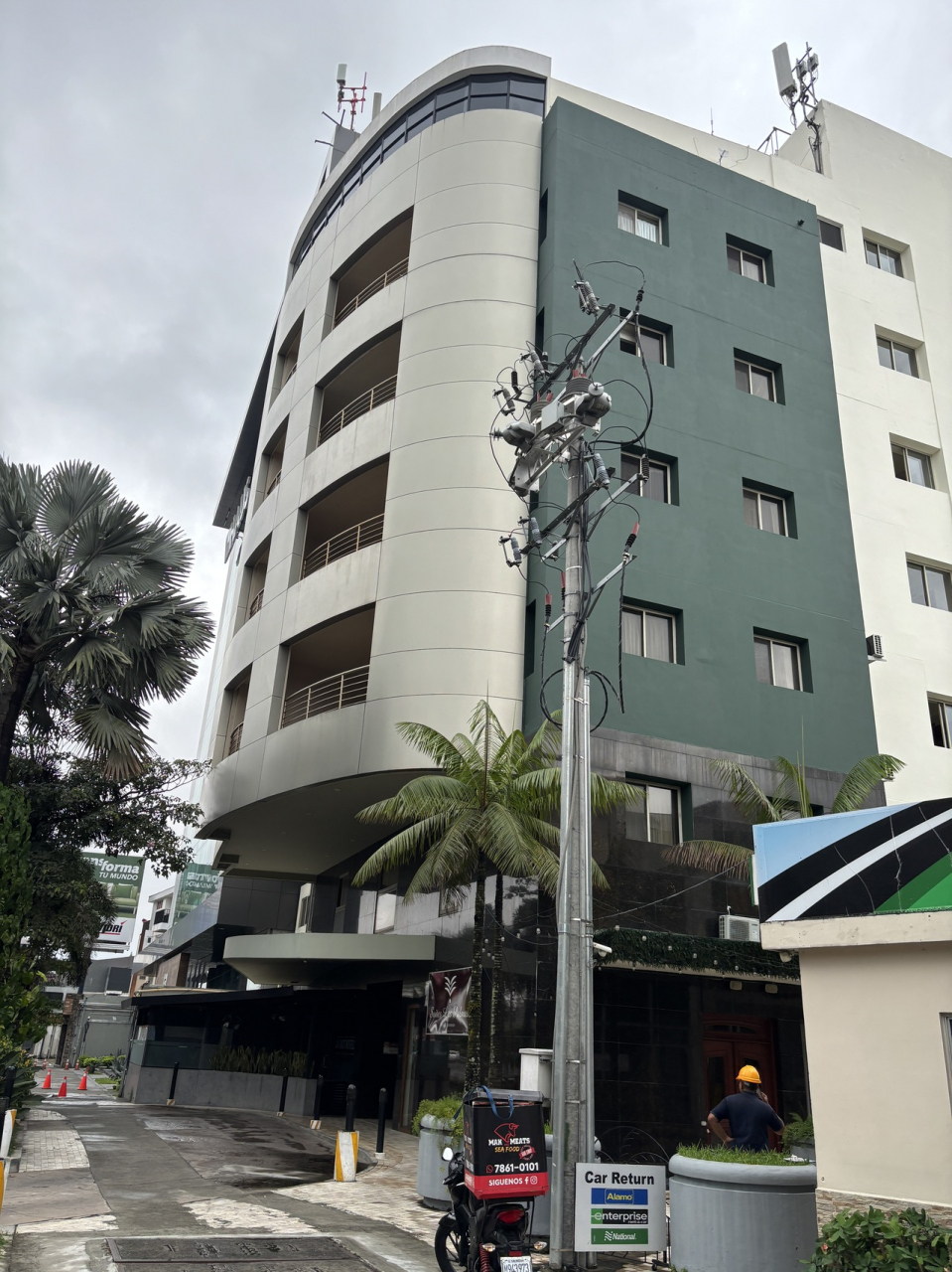 サンサルバドルというと治安が気になる街ですけれど、安全だと思われるエリアにあるのがポイントです。それでも、ちょっと気になりますけれど、セキュリティがキチンとしている点も安心です。キレイなロビーでスタッフの対応もいい感じです。広めのスペースのお部屋で、ちょっと古臭いデザインですけれど、必要な物が揃っています。近くにホンジュラス行きのバスターミナルがあったので宿泊しました。周辺にレストランもあるので、無事に過ごす事が出来ました。