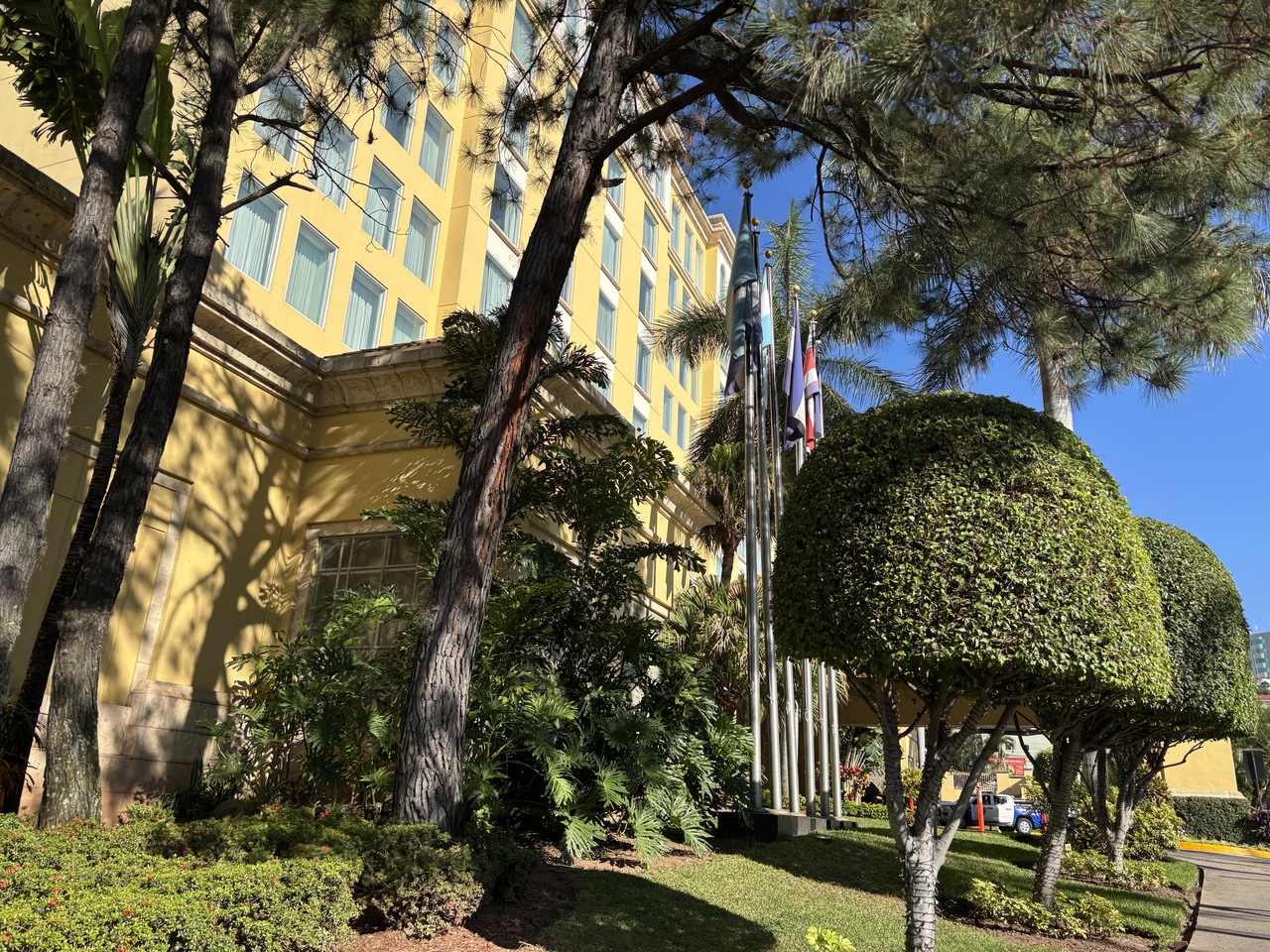 テグシガルパの比較的、安全なエリアにあり、目の前にショッピングモールがあるので便利です。しかも国際バスで到着したのですが、このホテルが終点になるのです。セキュリティもキチンとしていますし、ロビー、レストラン、お部屋もインターコンチ仕様なので快適です。ホテル内にバス会社のオフィスがあり、次の目的地までのチケットも購入する事が出来ます。治安の良くない街ですから、それなりの滞在費でも利用する価値があると思います。