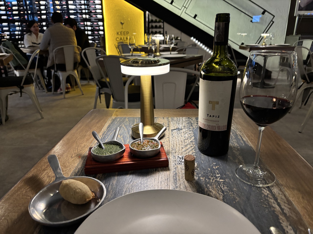 ボゴタの街のレストランが集まっている93公園の近くにあり、ゆったりと食事する事が出来る雰囲気のレストランです。お肉料理がメインのお店なのでステーキにワインを注文しました。提供されたステーキの見た目、焼き加減は完璧です。味ですが、ちょっとイマイチ?想像していた感じと違いました。 外国産とコロンビア産があり、コロンビア産にしたのです。それでも、現地産のテイストを経験出来て満足です。英語は、あまり通じませんでした。