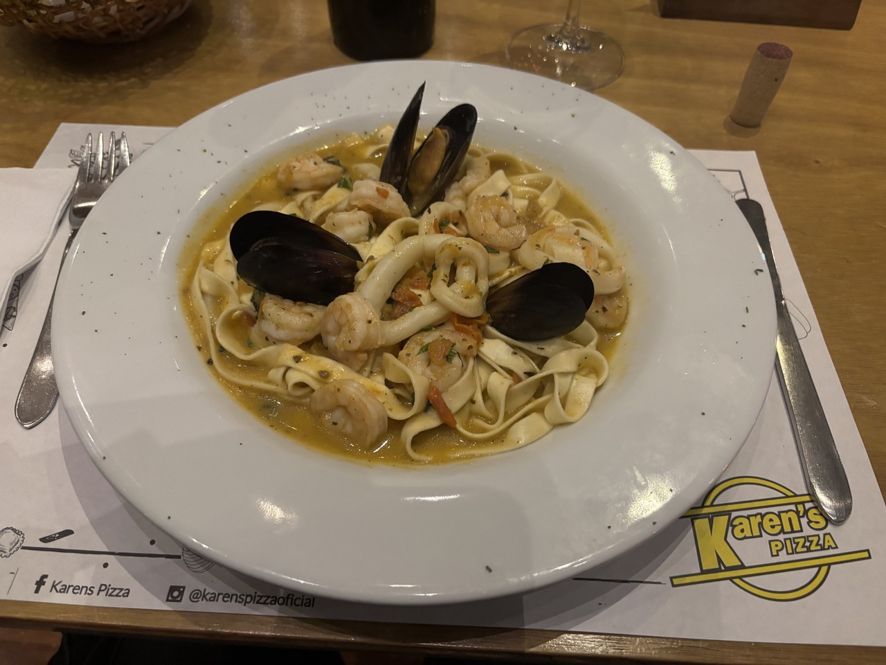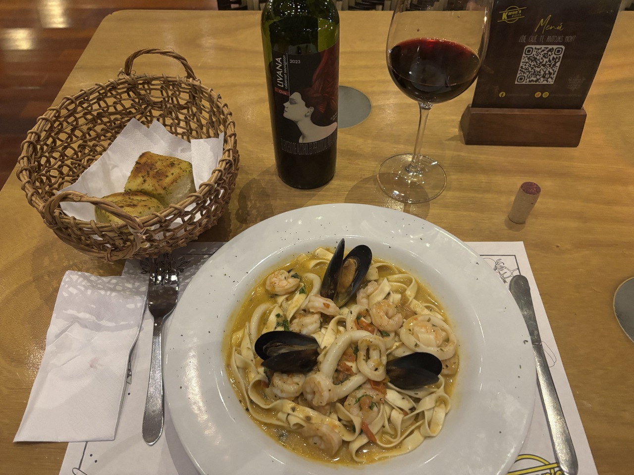 ボゴタの街の93公園の近くにはレストランが沢山あり、治安も安定しているので、そのエリアで適当に選んだお店です。清潔感がり、観光客でも入り易い雰囲気になっています。ピザがメインのお店ですけれど、パスタにワインをチョイスです。パスタのボリュームに満足です。パスタがホームメイドという感じの食感で、味付けも好みだったので、あっさり完食です。スタッフの方も英語で対応する努力をして下さり感謝です。