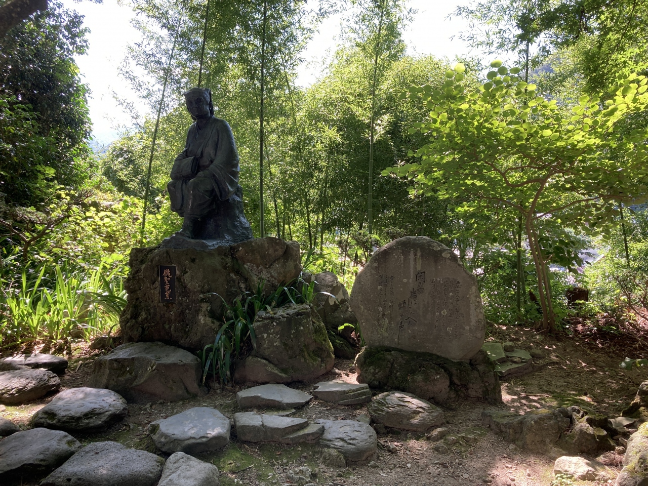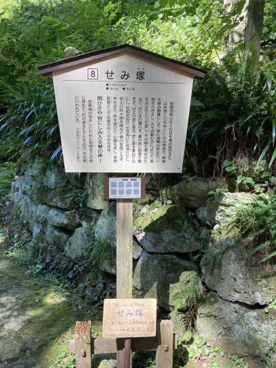 山形を代表する有名な寺院、山寺の広い境内の一角にあります。宝珠山の麓に近い場所にある宝物殿の近くにあります。参道を進むと見つけることができますが、地味な存在なので、気が付かないで通過している人が多いと思います。松尾芭蕉が訪れたことで有名な山寺で、句にも詠まれたということから、像が建立されたとのことです。芭蕉の像は昭和47年に建てられています。