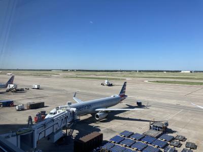 JALの国際線からの乗り換え時に利用しました。アメリカらしく広々とした巨大な空港になっていて、キレイなターミナル内には、日本ほどではないですけれど、ショップが沢山あります。いくつもターミナルがあるみたいで、ゲートによっては移動の距離が長くなり、乗り換え時の便のゲートに行くまでに15分くらい歩いたと思います。アメリカン航空のハブ空港になっているみたいで、アメリカン航空の機体が沢山駐機しています。その関係で、同じアライアンスのJALが就航しているのだと思います。