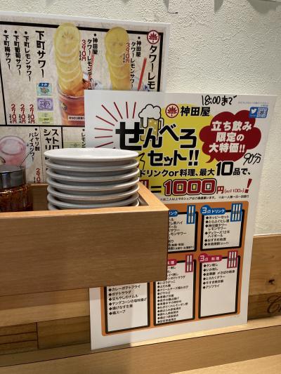 JR神田駅の近くにある大手の企業が展開している飲み屋さんで、一階が立ち飲みコーナーになっています。お得な価格帯のお店ですけれど、更にお得なせんべろセットが数量限定で提供されています。1000円プラス税金で1100円ですけれど、それでも激安という感じの内容になっています。こちらを利用するとウーロンハイなどが110円なのですから。ですから、文字通りにせんべろなのです。料理もお得になっていて、おひとり様サイズになっています。ちょっと狭いスペースですけれど、お得に飲みたい人にお勧めになっています。