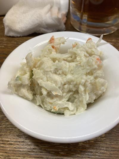 上野の駅のアメ横の近くの飲み屋さんが並んでいるエリアの一角にある飲み屋さんです。一階が立ち飲みになっていますけれど、人気店なので、遅い時間に行くとお店の外まで人が溢れています。ですから、早めの時間帯に行って場所を確保しました。激安のせんべろセットがあって、税込み1100円になっています。これでチューハイ4杯に天ぷらを食べることができます。天ぷらもキチンとしたクオリティーになっていて、かなりお得感があります。追加でポテトサラダを注文しましたけれど、ひと工夫されていて、いいおつまみになります。上野エリアは激安飲み屋さんの激戦区になっていて、色々なお店があって楽しいです。